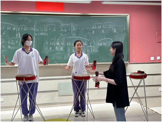 实习期间,我将第一课堂和第二课堂充分融合,对音乐课堂教学进行了有效的补充和拓展,有力提升了学生知识储备,不仅为学生展示特长搭建了舞台,更有力增加了学生对音乐课程的兴趣特别是对中国传统音乐文化的兴趣。我觉得对教师而言,要尽可能多去尝试各种形式的课程,在多和学生相处中发现他们的闪光点并给予肯定。同时要在课后及时反思,经过日积月累、持之以恒,凝练成自己对教学的思考和反思,着力打造“金课”,通过对艺术沉浸式的体验和感受,让学生们通过推开音乐艺术的大门,在美妙动听的旋律间被感动,在舞台上挥洒汗水间阐释自己对音乐艺术、对社会、对国家、对民族的深切感情,带来美的享受和共鸣,那么音乐教学才是鲜活的、灵动的、易于接受的。最后,对音乐教学的思考不能仅停留在一时一域,而需要不断学习音乐教学前沿的新方法新观点,结合自己的教学特点,不断改进、完善、推陈出新,这样对提高课堂教学能力,探索课堂教学改革,形成自己独特的教学风格大有好处。
