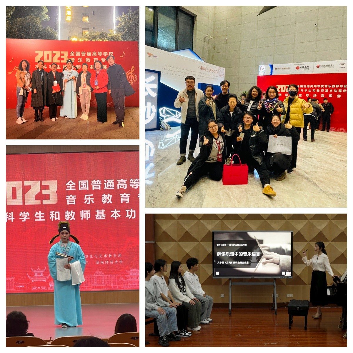 全国普通高等学校音乐教育专业本科学生和教师基本功展示由教育部主办,以强化价值引领、促进交流互鉴为重点,对标新时代学校美育高质量发展需求,着力推进建设满足基础教育改革发展需要的高素质专业化创新型音乐教师队伍。教师组的竞赛内容包括教学展示(微课)、专业技能展示、审美和人文素养展示(经典音乐作品赏析)三个项目,学生组则包括教学展示(微课)、合唱指挥、即兴弹唱等六个项目。本届展示活动由湖南省教育厅、湖南师范大学承办,来自全国107所高校的352名师生参加了为期4天的音乐基本功展示。我院师生自接到任务以来,发扬斗争精神,每周风雨无阻集中培训,定时切磋交流,教师团队不计个人得失,全程指导。在活动中,师生在各个项目中展示了良好的精神风貌、扎实教学实践能力与专业技能素养,彰显了开云官网在音乐教育专业领域的实力和影响力,在全国范围内树立了良好的形象。