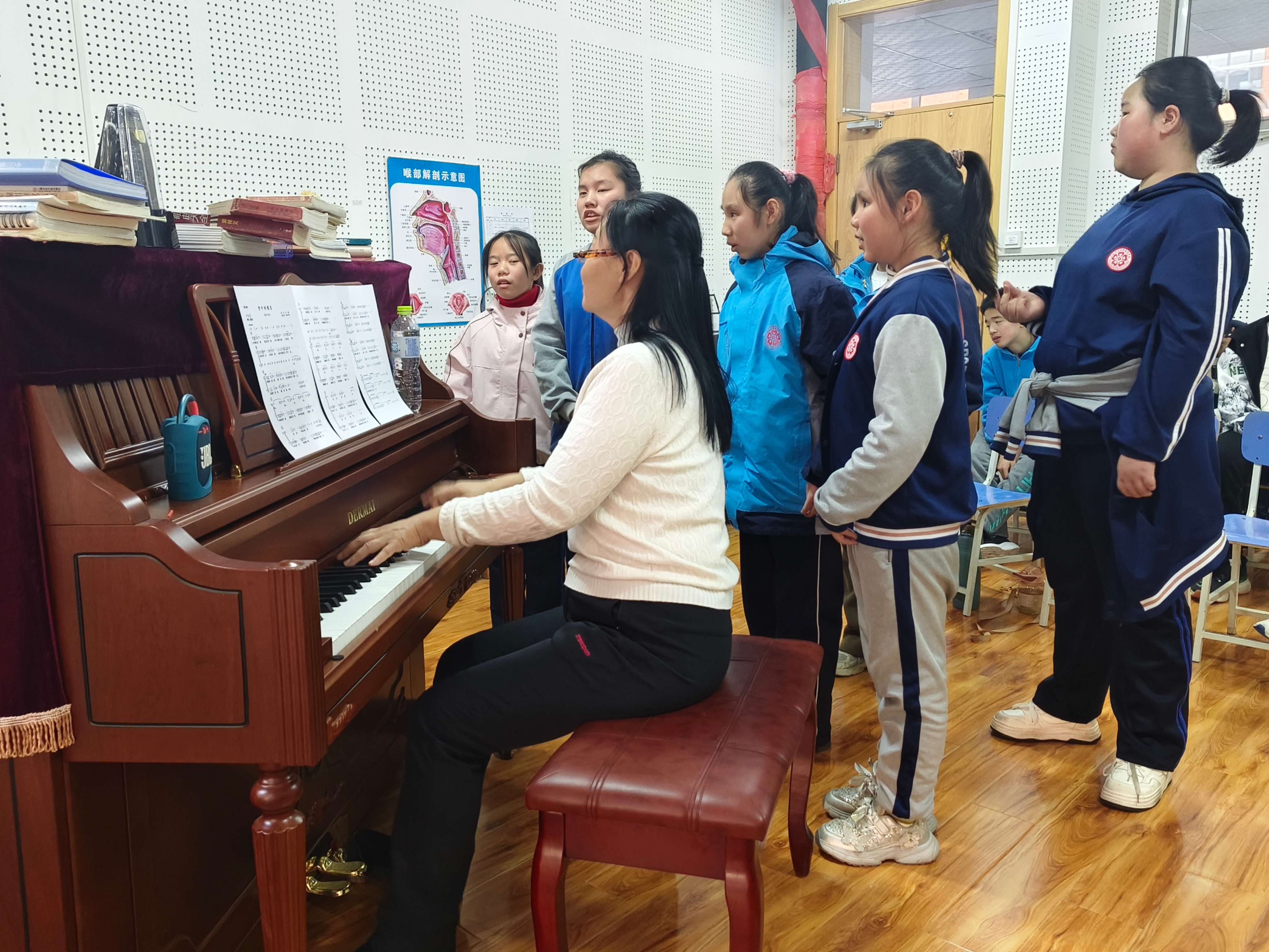 在声乐课堂的俯身指导中,我对“教育” 有了更深刻的理解。视障孩子看不见指挥,也无法学习口型,只能靠听觉和触觉感知音乐。我放弃复杂理论,全程亲身示范:弯腰教呼吸节奏,让他们伸手触摸我的口型与面部震动,用手当“眼睛”,用身体传感受。对他们而言,声乐不是技巧堆砌,而是信任传递。我愿以耐心陪伴,让每个孩子循着声音找到音乐天地,让歌声成为他们感知世界、表达情感的明亮窗口。