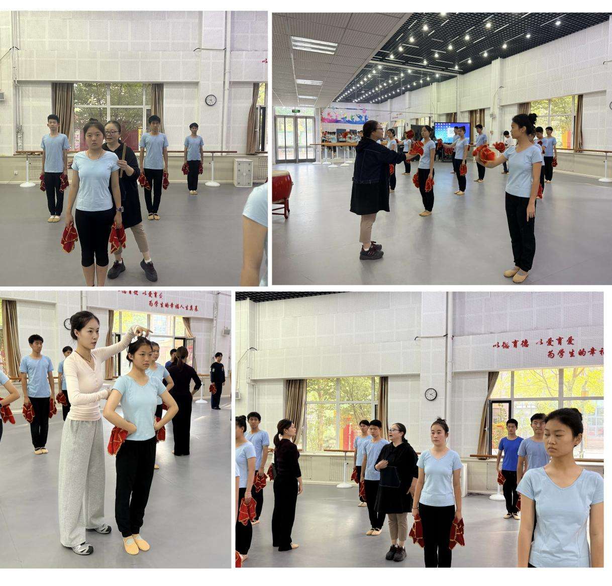 舞蹈课堂上,李霞副教授进行了东北秧歌舞蹈教学。面对听障或视障学生,她坚持不降低标准,选择用更艰辛的方式——不辞辛苦“亲手调整动作”、“反复示范”,让男生女生分组,分动作训练,把“浓浓的温暖”毫无保留地给予了孩子们。