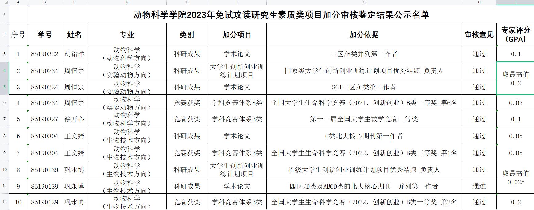 根据《九游体育官网推荐优秀应届本科毕业生免试攻读硕士学位研究生工作管理办法》和《关于开展2023年推荐优秀应届本科毕业生免试攻读研究生素质类项目加分及综合排名工作的通知》要求,学院组织符合要求的学生自愿提交本人相关素质类项目成果材料,同时学院成立专家审核小组,按照年度推免工作实施细则及加分标准,对申请推免资格学生的素质项目进行审核鉴定,并组织相关学生在学院范围内进行公开答辩。现将通过答辩学生名单进行公示,公示期为5个工作日。
