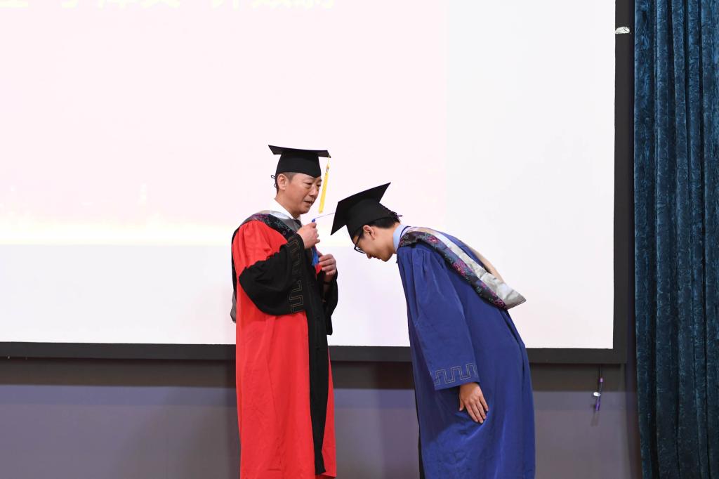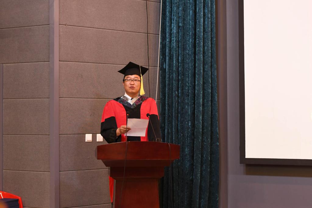 学位授予仪式在雄壮的国歌声中拉开了帷幕。学院副院长、学位分委会主席张明军教授宣读了九游体育官网2020届毕业研究生授予学位名单。副院长、学位分委会副主席孙博兴教授、副主席逄大欣教授、委员任文陟教授作为主礼教授为毕业研究生拨穗正冠,院长张嘉保教授颁发学位证书。