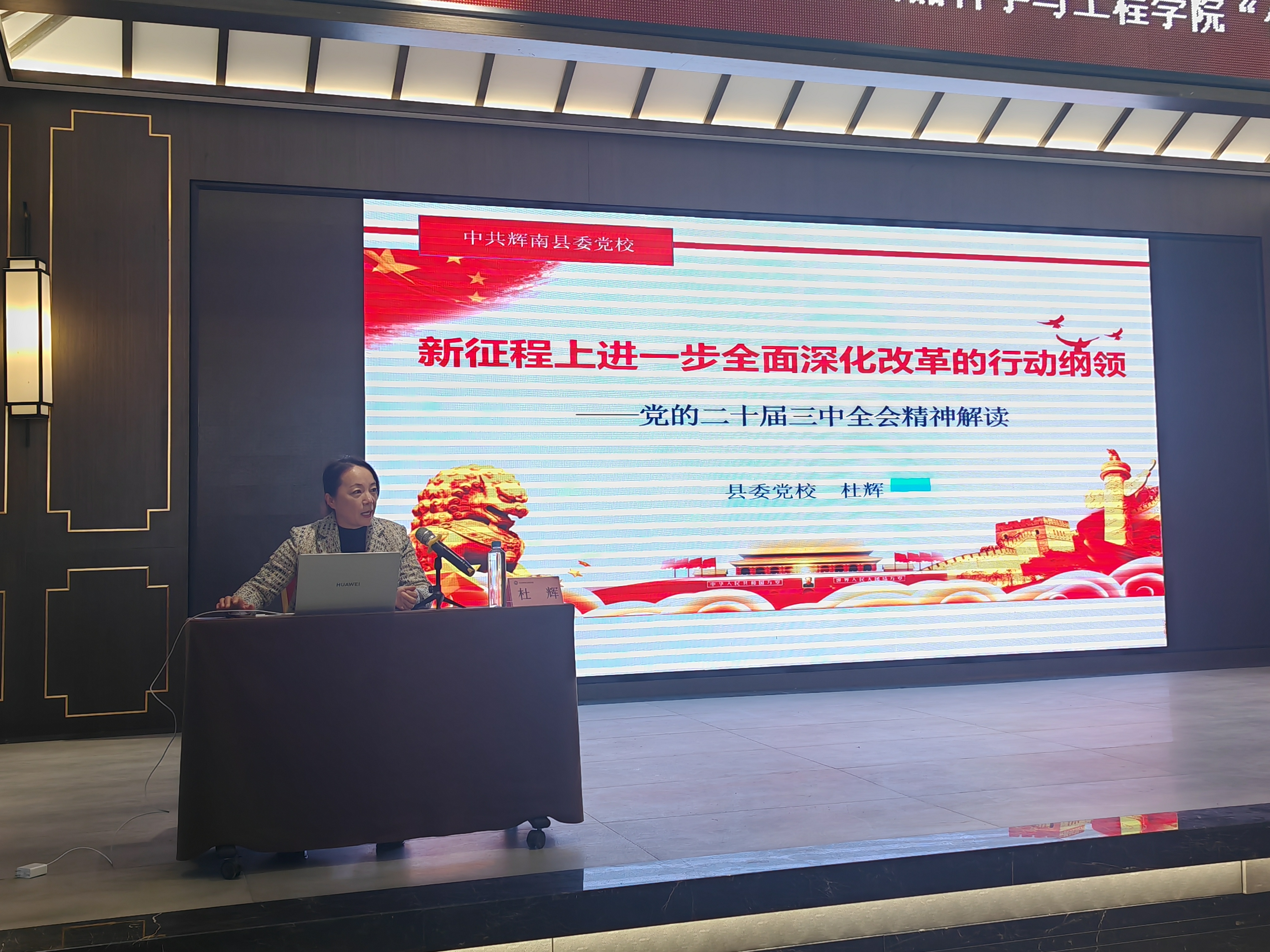 开班仪式上,中共辉南县委党校副校长杜辉同志致辞。杜校长代表党校向老师们的到来表示欢迎,并详细介绍了辉南县和集安市的红色资源和经济发展情况。食品科学与工程学院党委书记董怀智代表培训班作动员讲话。董书记表示,东北抗联精神激励着无数党员砥砺前行,建功立业希望通过此次培训师生党员能够进一步把思想和行动统一到党中央决策部署上来,扎根东北,矢志教育,在时代大潮中建功立业,在高等教育发展中贡献力量。