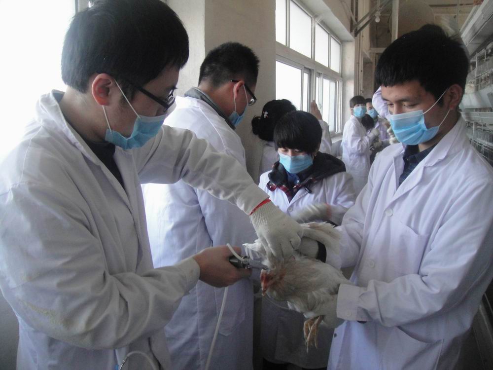 此次家禽生产教学实习的主要任务是蛋鸡的免疫接种,同时对场区和周围环境进行了清理、消毒。在免疫之前,张永宏老师对于防疫的重点、难点及注意事项做了详细讲解并亲自示范。同学们分工合作、默契配合,圆满完成了8400余只蛋鸡的疫苗接种等各项实习任务。