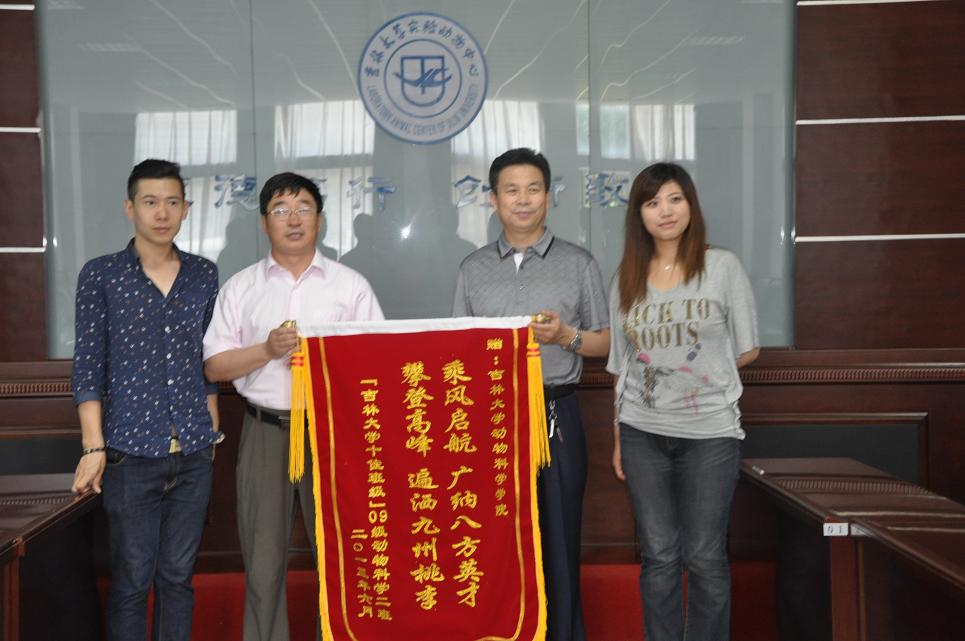 6月28日下午2:30,九游体育官网2009级动物科学2班毕业生在离校之际向学院赠送了锦旗。学院院长张嘉保教授、党委书记赵光军老师、党委副书记曹伟光老师、毕业班辅导员肖建荣及部分毕业生代表参加了此次赠予仪式。