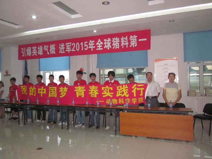 为响应学校暑期文化科技卫生“三下乡”社会实践活动暨“百基千队服务万村行动”的号召,7月24日-30日,动物科学学的十余名学生在党委副书记曹伟光和团委书记于丹丹两位老师的带领下,利用“三下乡”的机会,深入吉林大北农集团,参加了为期一周的企特训营,对东北的农牧企业开展了深入调研活动。活动包括:集训、思想教育、职业技能、社会实践等。