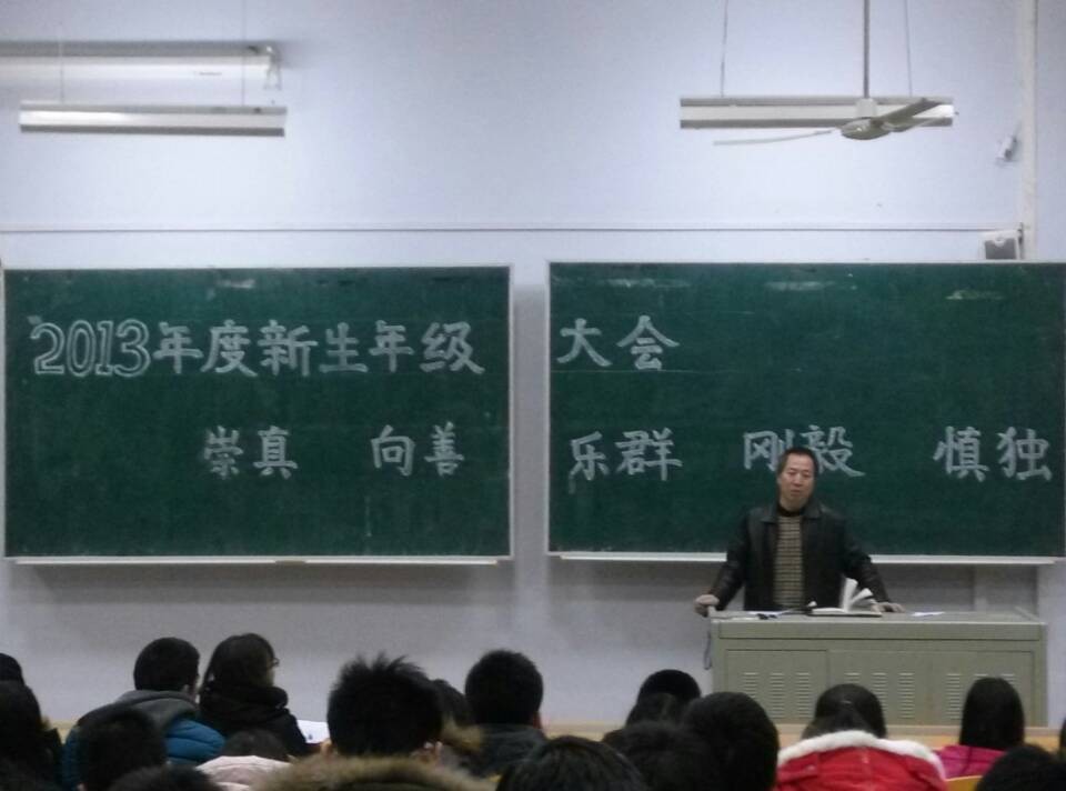 伴随着期末考试周及寒假的临近,为了端正2013级新生学习态度,鼓舞学生迎接第一次大学考试的士气,九游体育官网于12月19日下午14:30在科学讲堂100教室举行了2013级新生年级大会,学院党委副书记曹伟光老师,13级辅导员肖建荣老师到场参加。