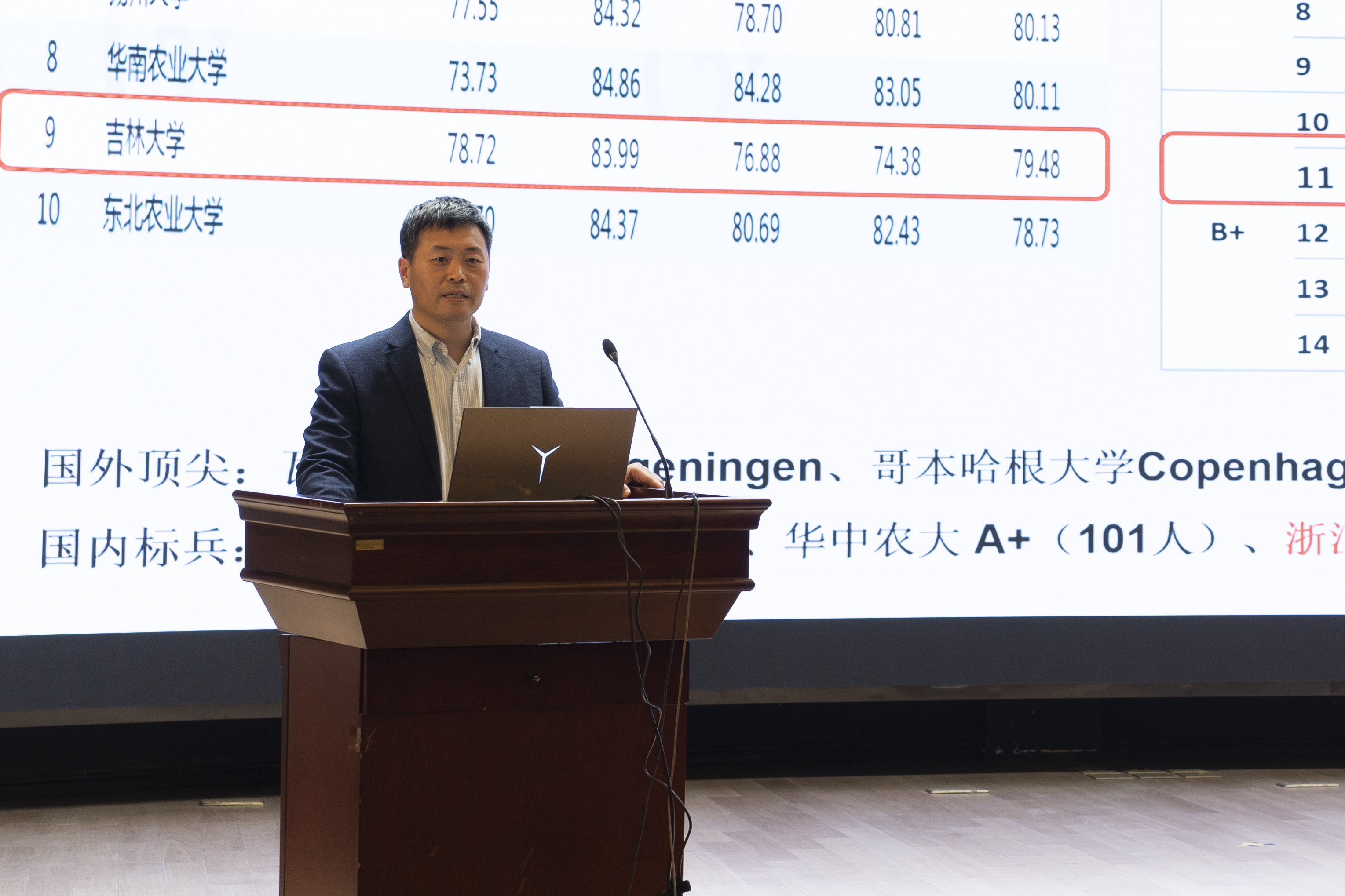 生物技术系主任李占军从培养目标、专业规划、学科基础、导师团队等方面介绍了动物科学专业(生物技术)。他从“成绩最重要”和“深造必要性”两个方面寄语新生,希望同学们能够将学习放在第一位,利用我校“双一流高校”、“985高校”的平台和优势,实现更高质量、更加全面的发展。