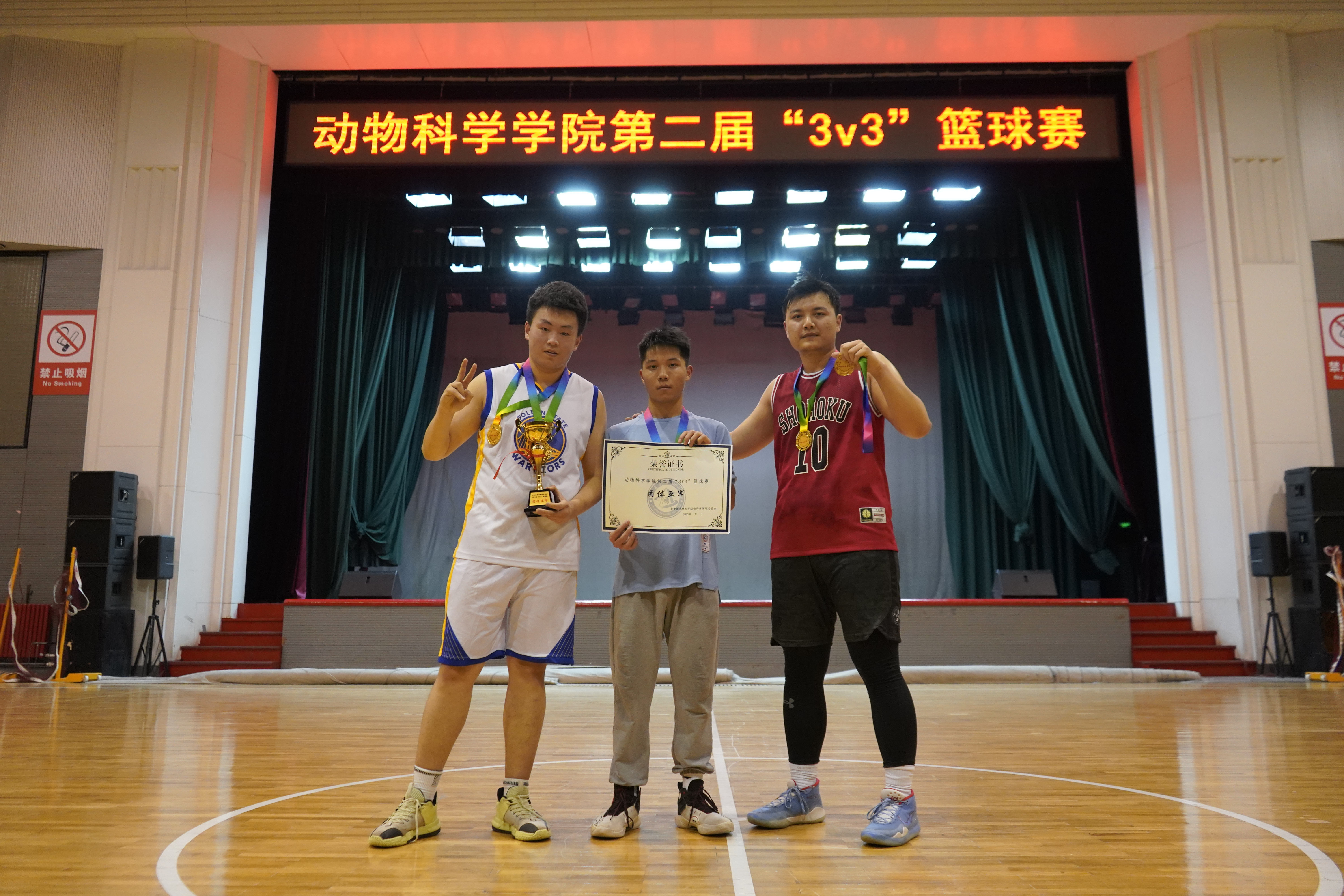 本届“3V3”篮球赛六支队伍由本科四个年级的同学交叉组队,促进了各年级同学之间的友好交流,为动科篮球队备战之后的院系比赛打下了基础,展现出了动科学子顽强拼搏、相互配合、彼此信任的精神风貌。