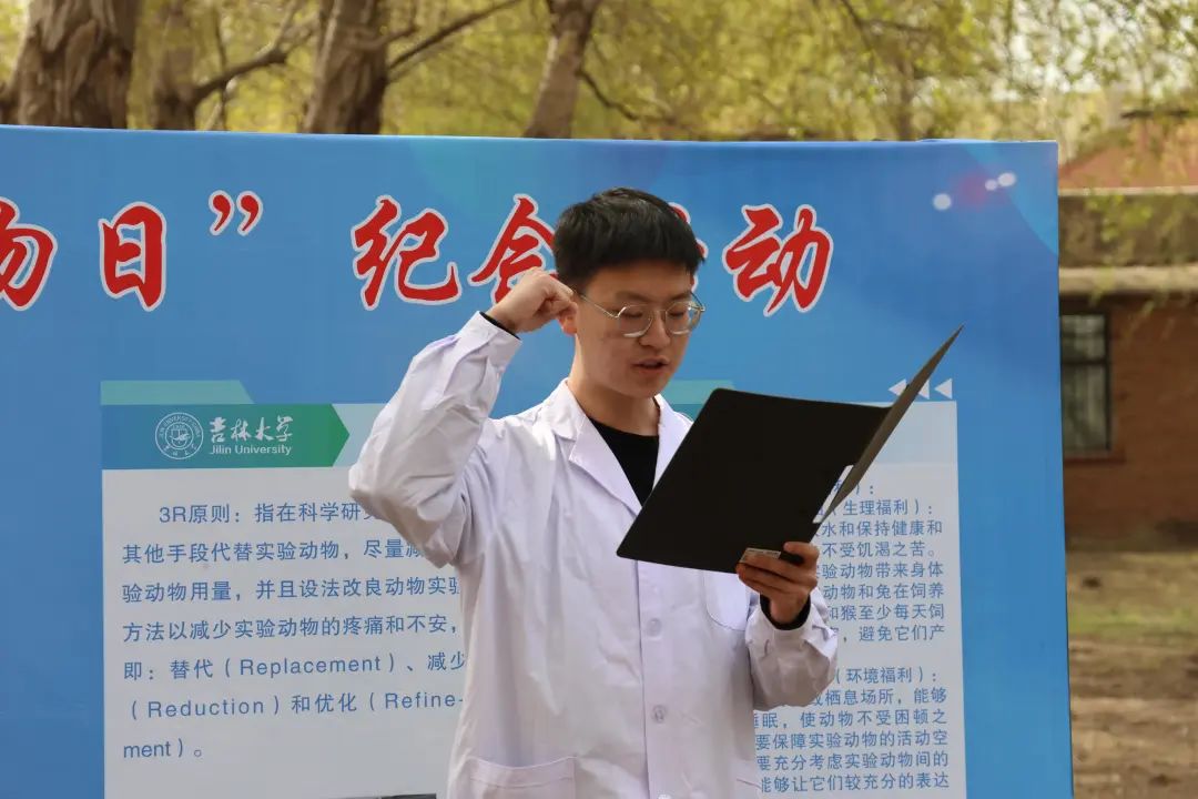 随后,席海涛处长代表实验室管理处向专程前来参加仪式的各位师生表示敬意。席处长高度评价了实验动物在疫情期间为我国新冠疫苗、药物研发过程中做出的巨大贡献,以及在学校封控时期,实验动物中心全体工作人员为保障我校实验动物生物安全做出的辛苦付出。他强调,九游体育官网每年实验动物使用量超10万只,善待实验动物,维护实验动物福利和伦理是每一个科学工作者的责任,也是人类理智与情感的升华。他向同学们寄语,希望同学们在今后的学习、科研过程中,严格遵守《实验动物管理条例》,遵守动物实验相关规定,科学合理地设计实验方案,感恩实验动物的伟大奉献,更加努力地学习生命科学知识,不辜负实验动物的付出。