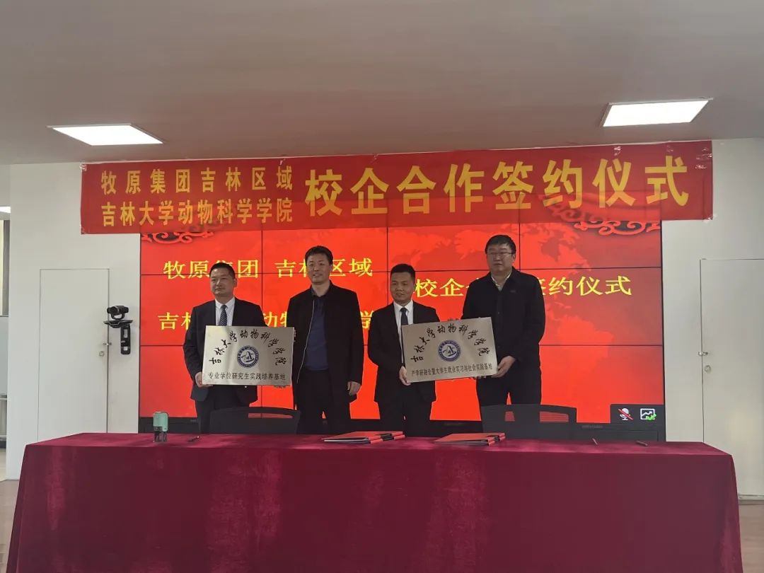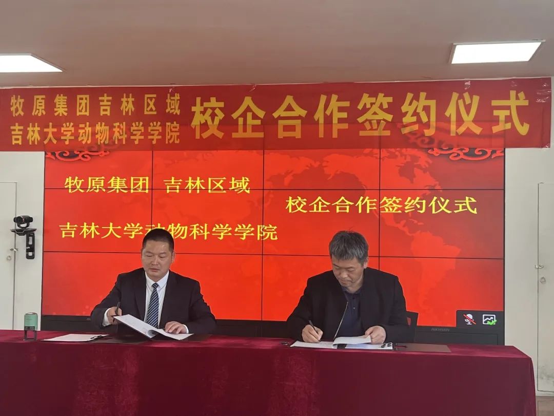 2023年4月26日下午,九游体育官网与牧原集团吉林区域校企合作签约仪式在吉林农安顺利举办。牧原集团吉林区域总经理甄玉清,吉林区域生产总监金恩望,九游体育官网院长孙博兴,副院长张明军,动物科学系教师梁爽、唐鸿宇,辅导员王可佳等参加仪式。仪式由牧原集团吉林区域人力资源总监于晓情主持。