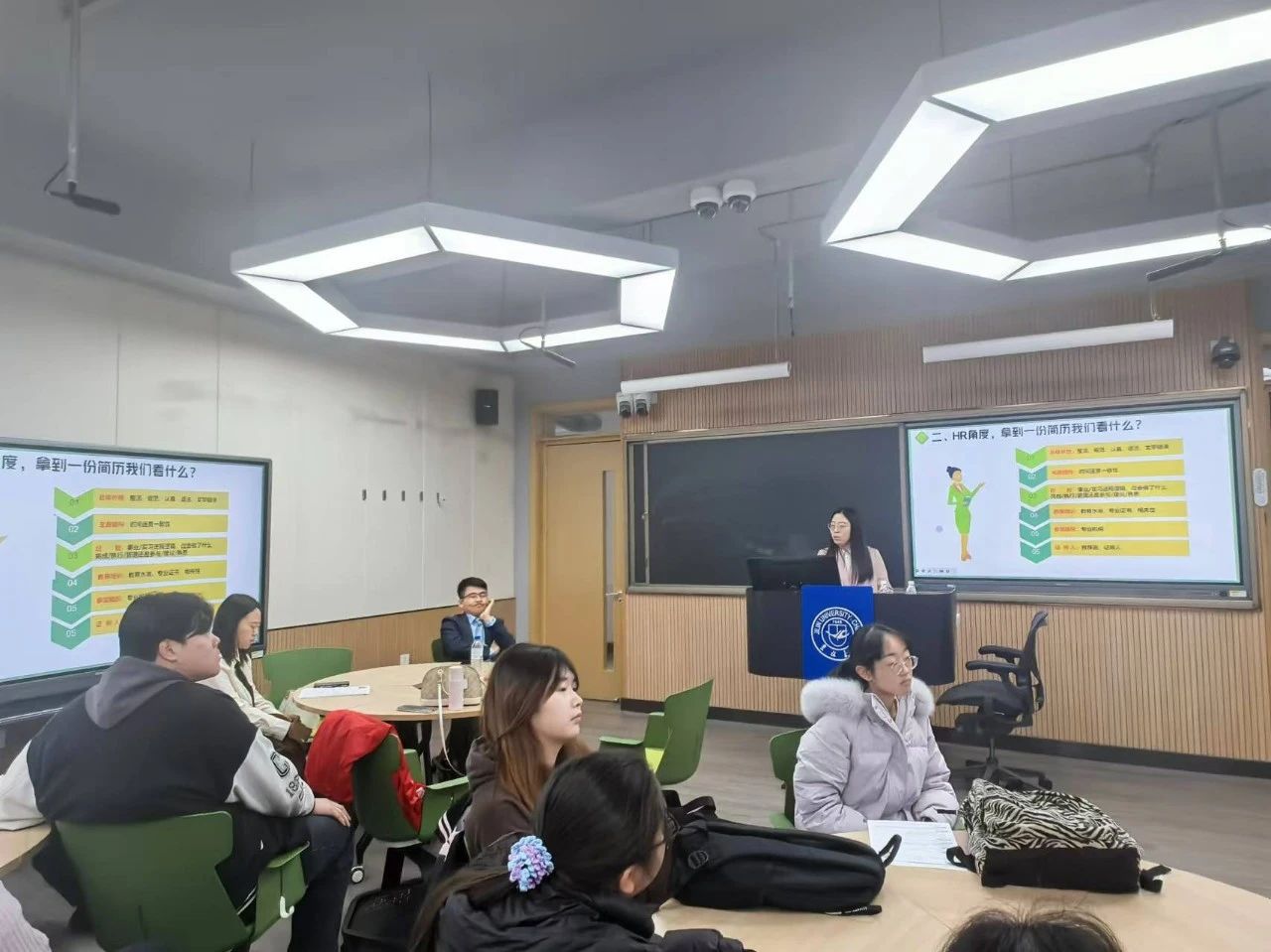 杜娟从“知己”这一概念作为切入点,围绕简历是什么、为什么要做好简历、怎样做好简历、怎样投递简历四部分向同学讲解了如何撰写一份优秀的简历。她建议同学们通过性格职业测试明确自己的优劣势,深刻体会“知己”的重要性。