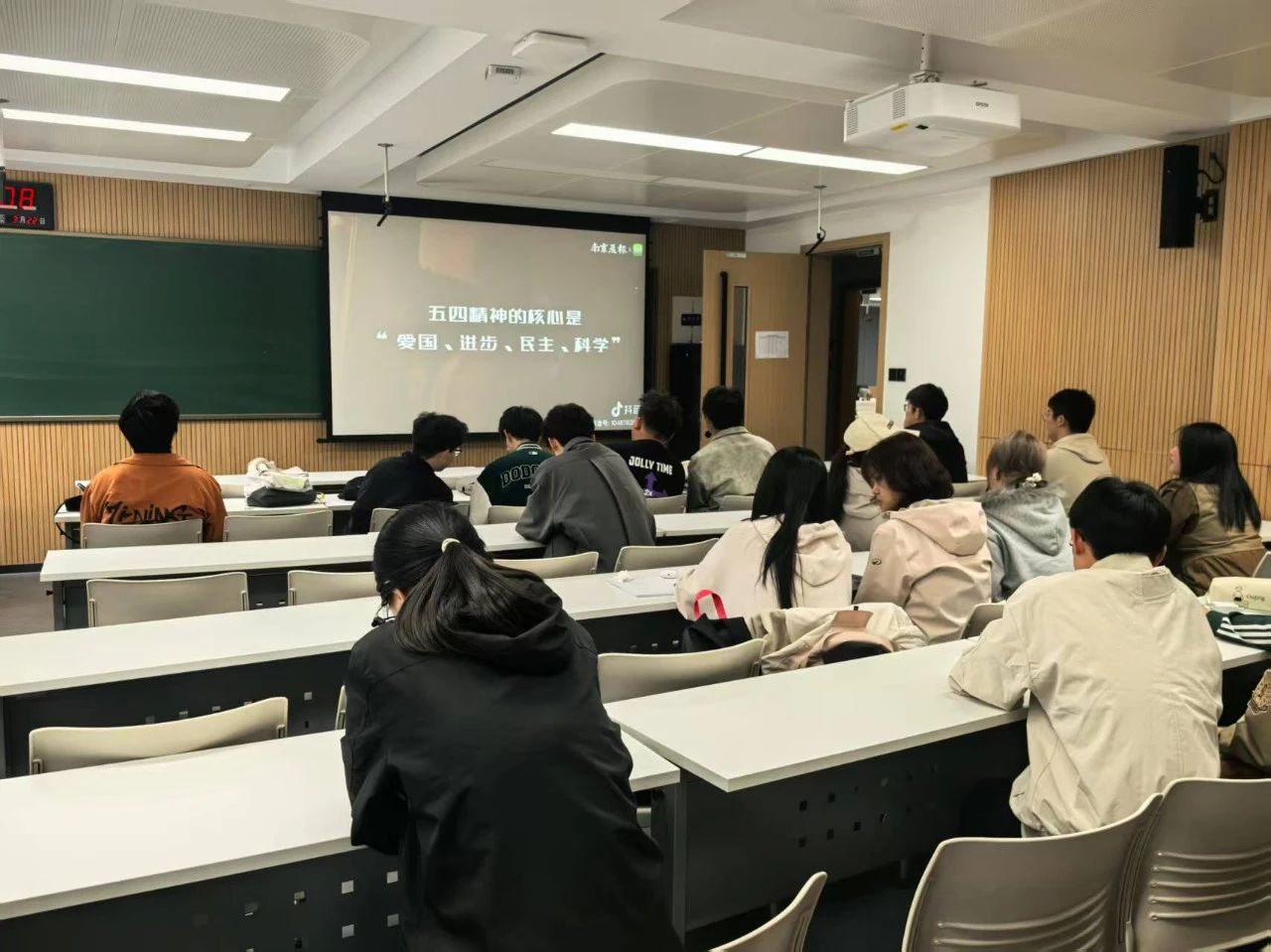 4月16日,2024级2班于前卫南区逸夫教学楼206举办了“传承五四薪火,担当时代使命”主题团日活动。团支书为同学们阐述学习五四精神的重要性。紧接着,全体同学共同观看了经典电影《无问西东》,观影结束后,大家展开了热烈的讨论,分享自己对影片中所体现五四精神的理解,从对自我价值的追寻到对家国责任的担当,拓宽了对五四精神的认知维度。同学们对弘扬践行五四精神有了更深刻的认知和体会。随后,在五四精神知识问答竞赛环节中,同学们沉稳应对,展现出扎实的知识储备,现场气氛热烈。五四精神的种子,正逐渐生根发芽。