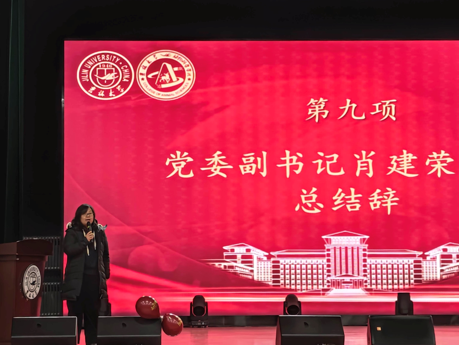 最后,党委副书记肖建荣进行总结致辞,她对参赛选手丰富的知识储备、过硬的个人素质和精彩的现场表现予以充分的肯定。她指出,“一二·九”运动是青年学生发起的抗日救国运动,这充分体现出青年学生的先进性和代表性,她勉励在场的青年同志要自觉学团史、知团情、跟党走,做政治信仰坚定的中国青年,为实现中华民族伟大复兴不懈奋斗。