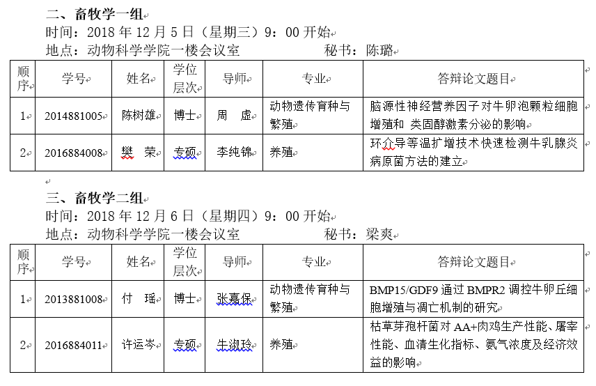 九游体育官网2018年下半年研究生学位论文答辩安排
