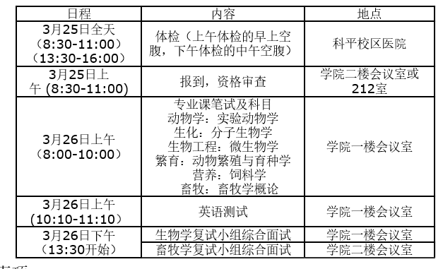 2、学院成立畜牧学、生物学2个复试小组,在领导小组的指导下,制定本复试组面试考核内容、标准、程序等,具体组织实施面试工作。复试小组在复试前应召开专门会议,研究生制定对考生的考察评价标准。成员如下: