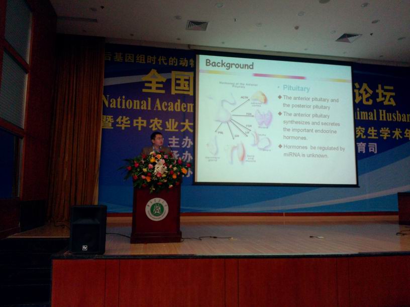 2013年11月22日至25日,由教育部学位管理与研究生教育司主办、华中农业大学承办的2013年“后基因组时代的动物生命科学”全国畜牧学博士生学术论坛在武汉举行。九游体育官网派出四名博士生参加了本次论坛。李宁院士,陈焕春院士及来自全国畜牧学相关高校和科研院所的畜牧学相关领域的国内外知名专家、学者和优秀企业家与会点评,并就“后基因组时代的动物生命科学”前沿问题做特邀报告,会议举行博士生交流报告30场,会议墙报展示60个,由8名博士生担任论坛主持人,8名青年教师担任点评专家。30名畜牧学相关领域博士生就学科前沿问题做了报告,并展开讨论。