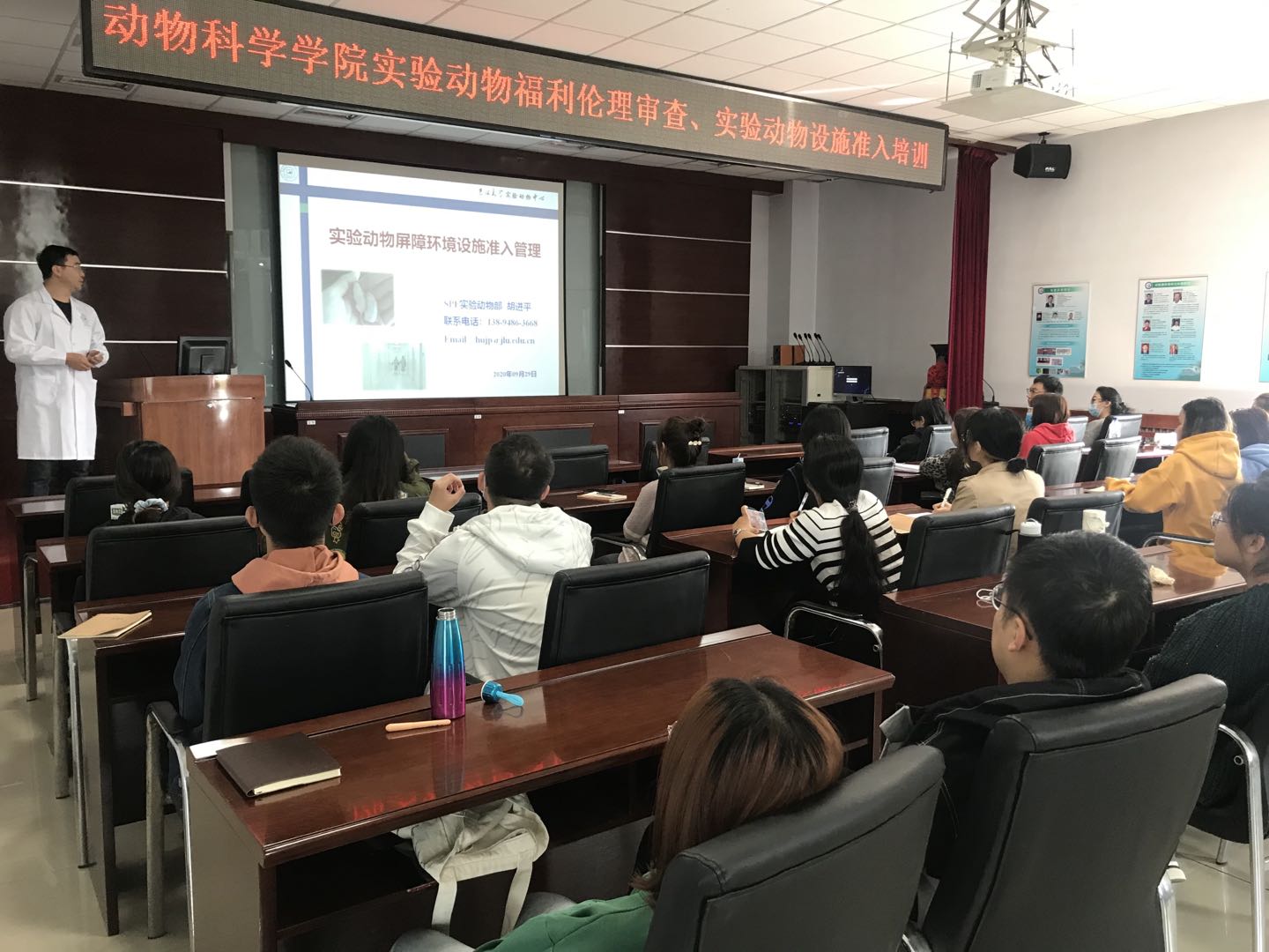 为规范实验动物使用及实验动物准入,确保实验动物生物安全,减少人与动物的过度交叉,2020年9月29日上午,九游体育官网在学院一楼会议室针对2020级研究生开展了关于实验室安全及实验动物设施准入相关内容的培训。本次培训由学院袁宝教授、正高级工程师陈健、实验员胡进平共同完成。