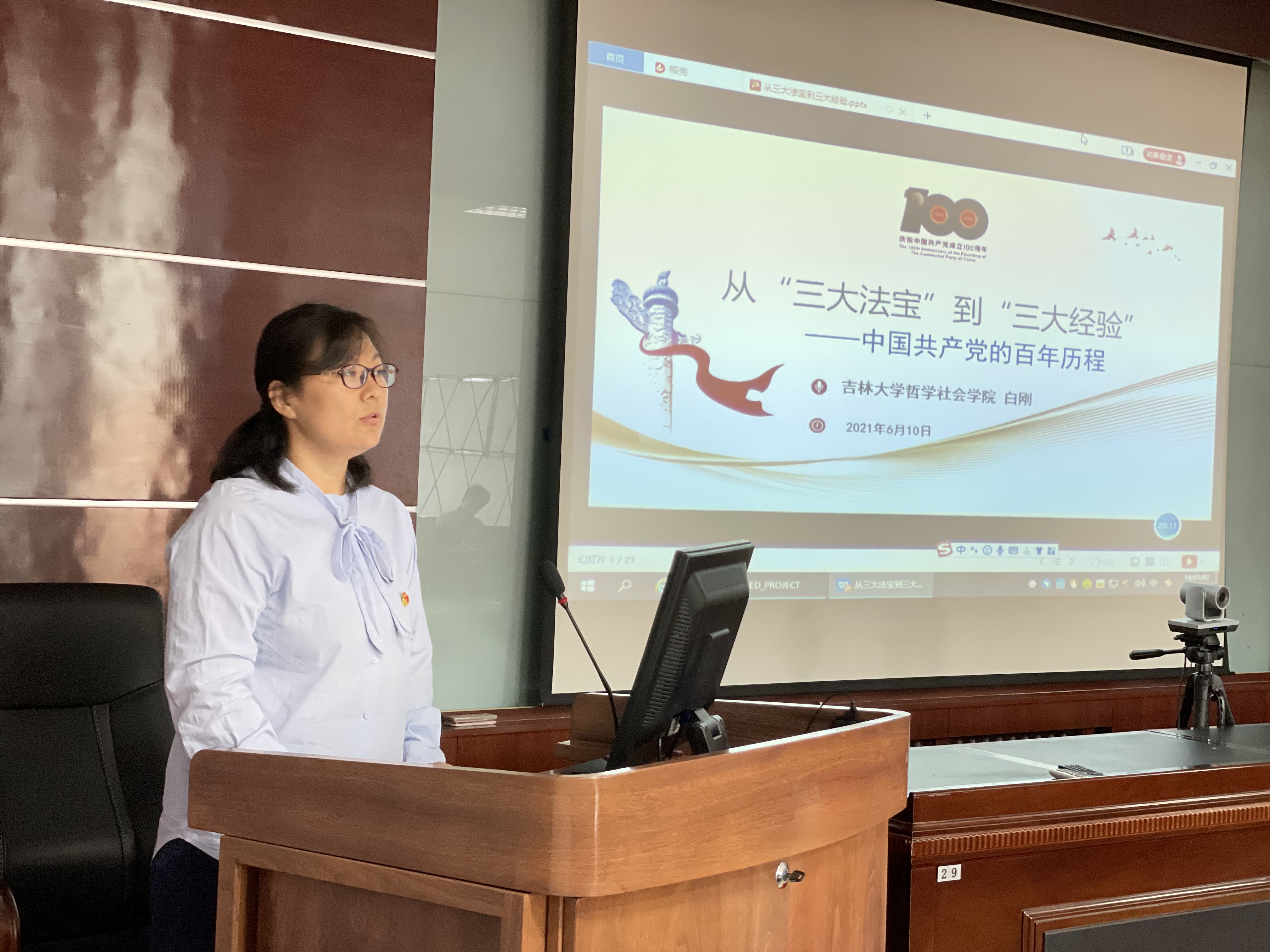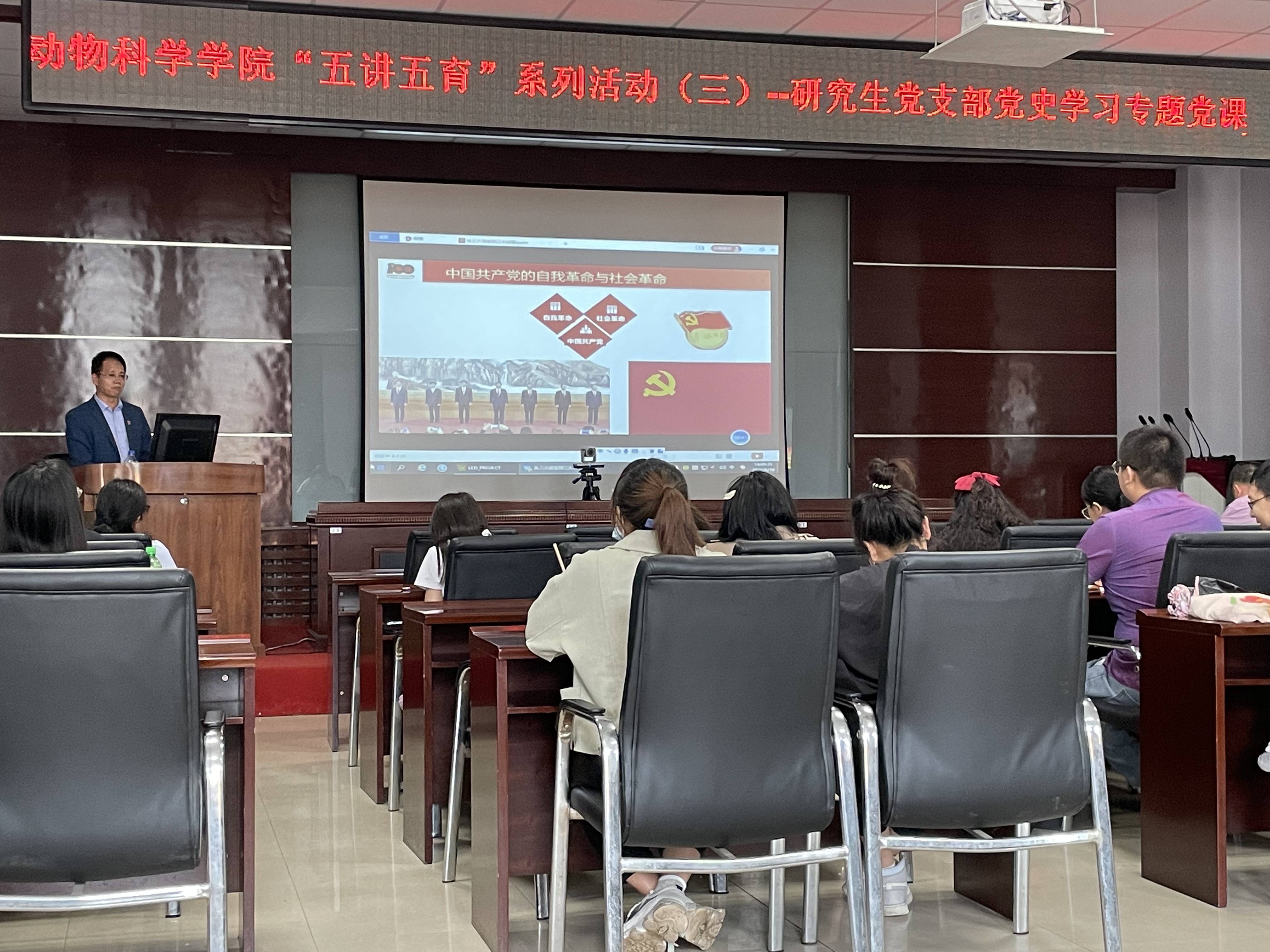 白刚教授讲课中,首先从中国共产党的自我革命和社会革命两个方面,回顾了党的百年光辉革命历程;讲述了中国共产党在中国革命中战胜敌人的“三个法宝”:统一战线、武装斗争和党的建设,以及十八大以来全面从严治党的重大战略部署;并结合自身研究成果和学习体会,概括了我们党的“三大经验”:坚持就是胜利、团结就是力量、将学习进行到底。白教授的讲座内容丰富、脉络清晰、鲜活生动,每名党员都深受启发和教育,对教育研究生党员学史明理、学史增信、学史崇德、学史力行起到了非常重要的引领作用。
