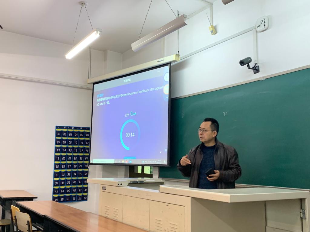 创新理念,深植于周虚教授对教学方法和教学内容的不断追问、思索与实干。《动物繁殖学》是学校最先开始慕课建设的农科类课程,于2015年获得九游体育官网精品慕课建设计划支持。课程目前已在中国大学MOOC、课堂派、爱课程等近十个平台上线,累计学习人数达到两千余人。经过多轮教学实践与探索,《动物繁殖学》已能流畅实现翻转课堂效果,学生提前利用视频资源学习知识性内容,为课堂上进行能力培养与人格塑造留出空间。《专业英语》课堂则是信息化手段与过程性评价的集中展现。上课时,周虚教授握着手机站在台前,控制投屏、随机提问、收集思维导图……推进教学过程的信息化操作他早已十分熟悉。到了期末,选修《专业英语》课程的同学们,不需要猛背单词或作文模板,他们或是在查找文献、形成观点、讨论观点等综合性训练过程中展示英语学术能力,或是通过排练展示生活场景的英语短剧,将自己对生命、伦理、科研的思考融入学习的过程中,联通专业能力与课程思政的结点。
