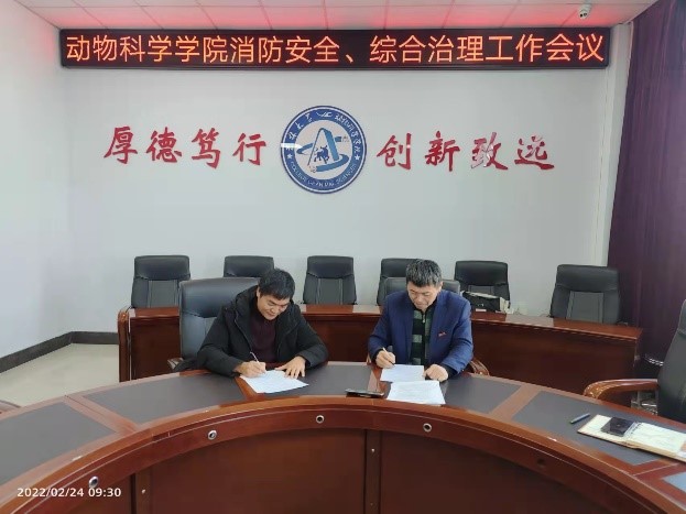 会议最后,高福和书记和孙博兴院长代表学院与各部门安全责任人签订了2022年度《治安综合治理承包责任书》和《消防安全责任书》。