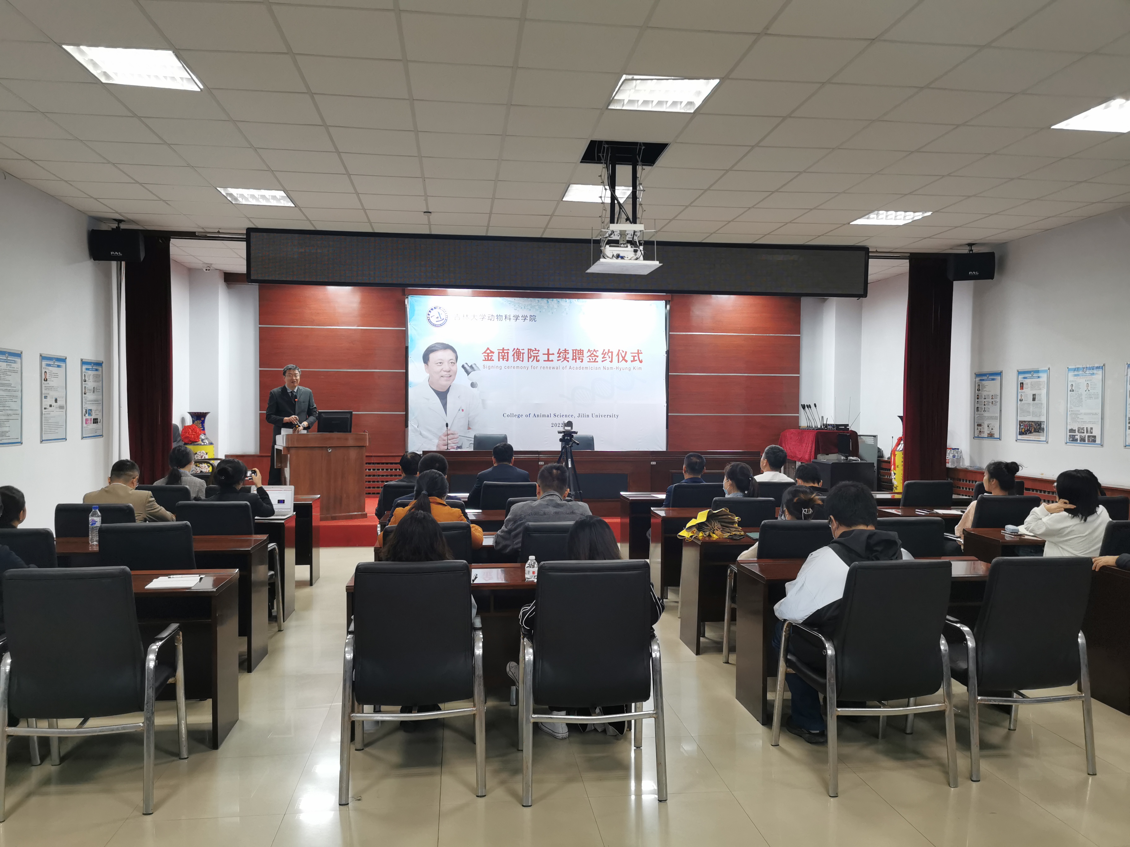 8月29日上午,九游体育官网在学院一楼会议室举行韩国科学与技术院院士、韩国国立忠北大学金南衡教授续聘签约仪式,学院领导班子成员和师生代表线下参加了仪式,全体2022级本科生和研究生新生线上参加,仪式由副院长张明军教授主持。