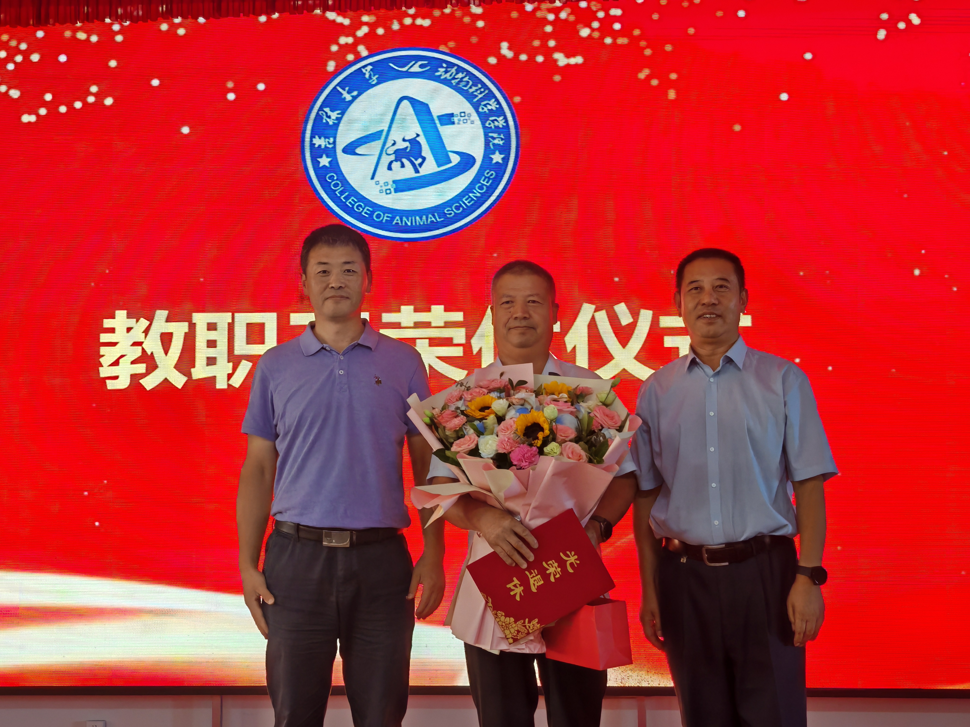 随后,举行新教职工入职仪式和教师荣休仪式。班子成员为2024年新入职教职工代表佩戴九游体育官网校徽并发放学院纪念品,党委书记高福和为退休教师沈景林教授颁发荣休证书,青年教工代表杨琳为沈景林教授敬献鲜花并合影留念。沈景林教授在退休感言中回顾自己32年的从教经历,用3个感谢,3个不舍和4个祝愿倾诉了自己对学院、对师生和对畜牧学科的深切情感,在鲜花和掌声中正式告别讲台,迈向人生新的篇章。