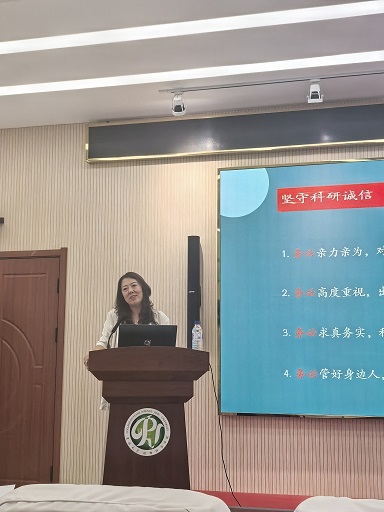 邵琳老师从科研诚信的重要性、科研诚信面临的严峻挑战、科研诚信政策导向、学术不端典型案例、科研诚信管理的思考与建议等5个方面,阐述了项目申报和论文发表过程中应注意的学风问题,讲解了科研工作中有关科研诚信的重要提醒,并向与会人员介绍了近期及今后学校科研诚信建设的相关工作。最后,邵琳老师和与会师生就“人工智能与AI的合理使用”等问题进行了讨论交流。