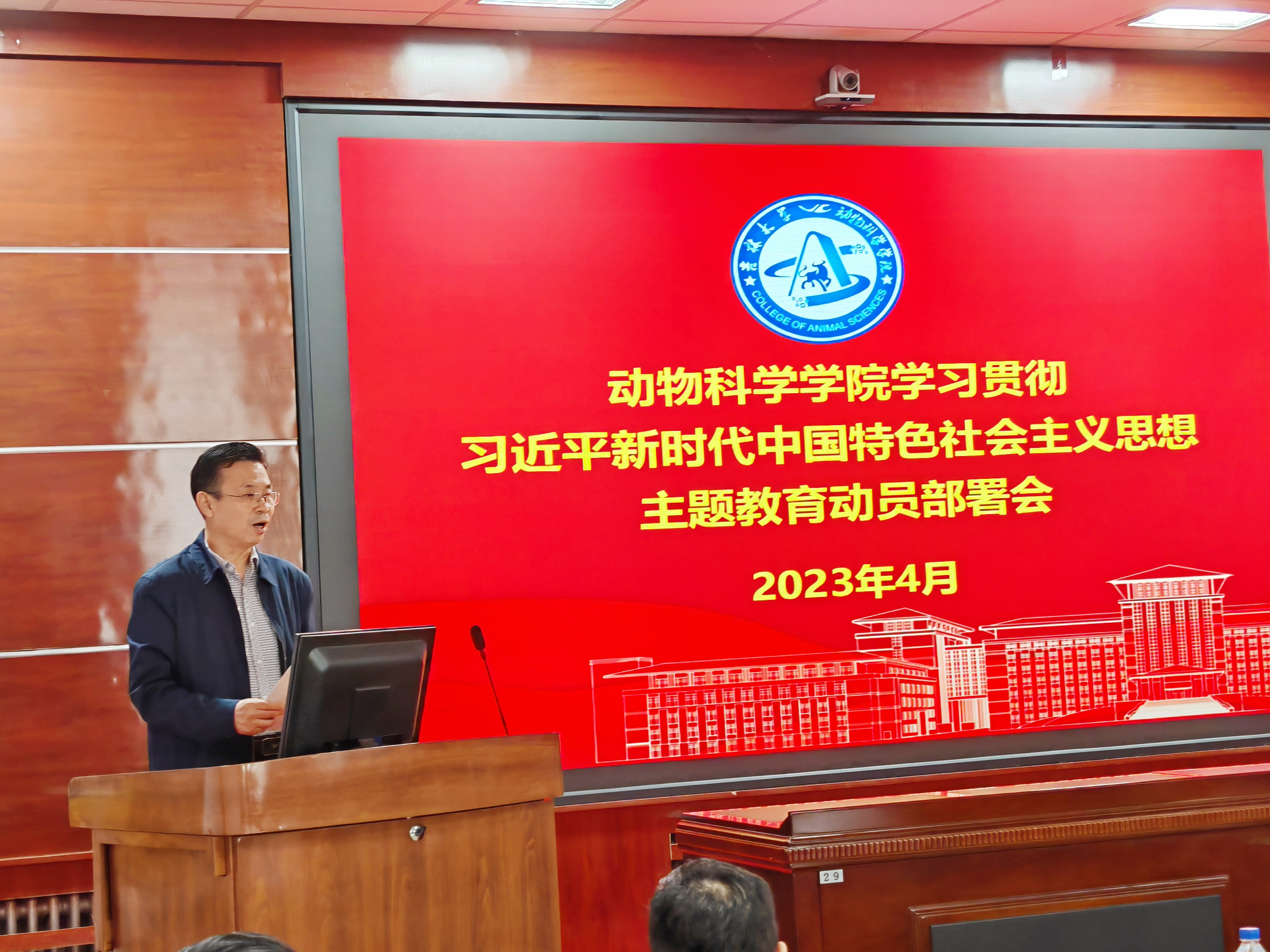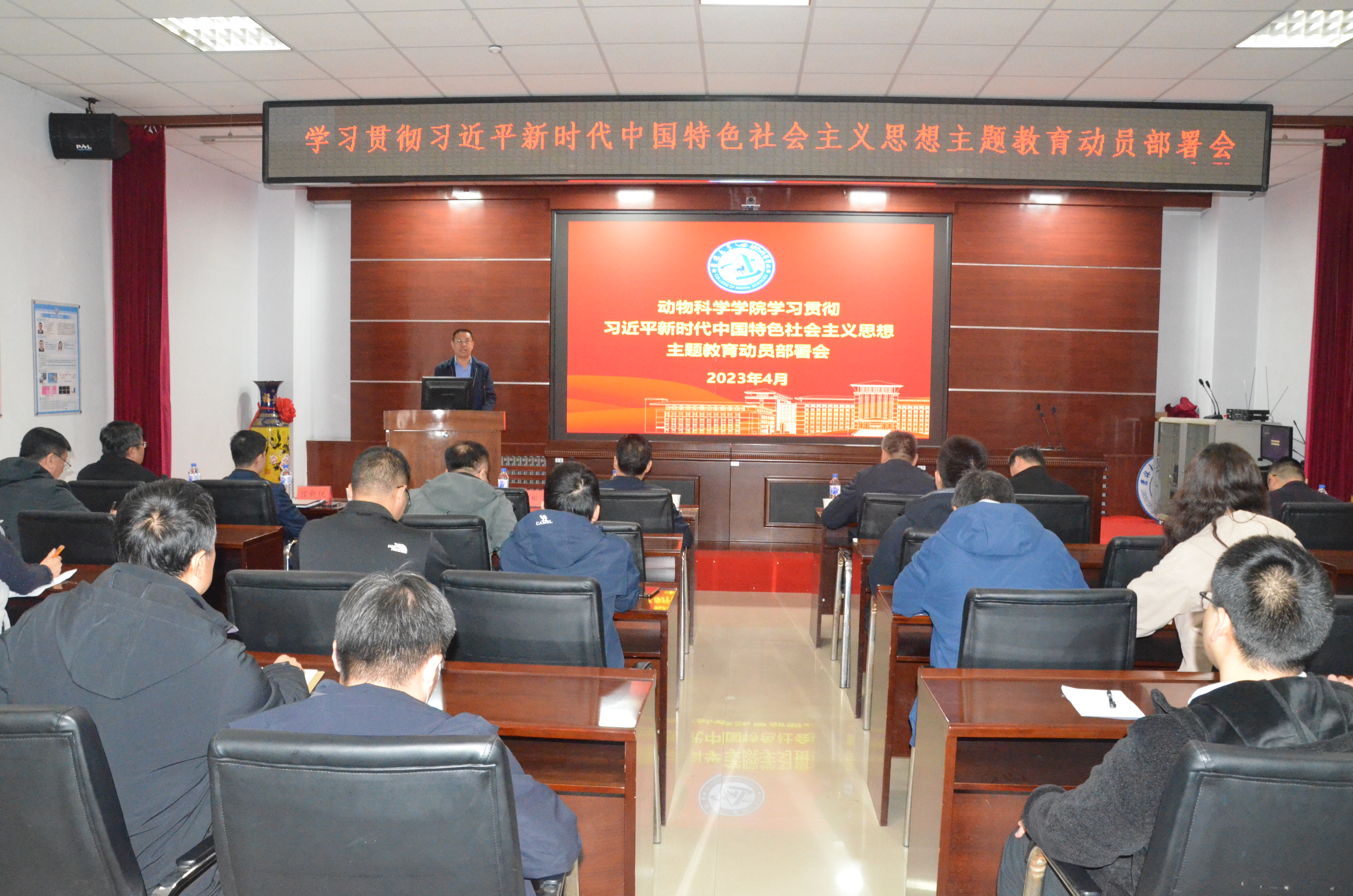 学校主题教育第12巡回指导组全体成员,动物科学学院领导班子成员,党委委员、纪委委员,院学术委员会、学位评定分委员会、教学委员会主要负责人,党支部书记,各系、部门、办公室主任,机关行政工作人员和师生党员代表参加会议。