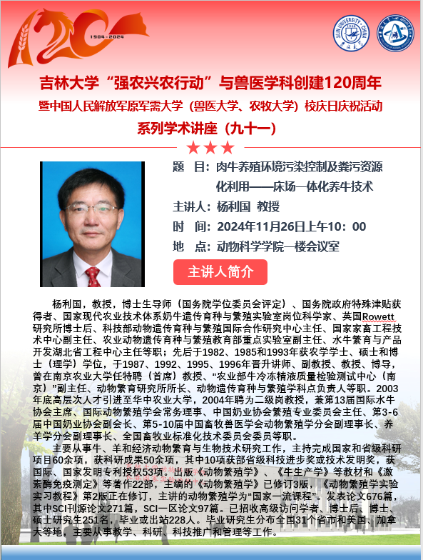 九游体育官网“强农兴农行动”与兽医学科创建120周年暨中国人民解放军原军需大学(兽医大学、农牧大学)校庆日庆祝活动系列学术讲座(九十一)